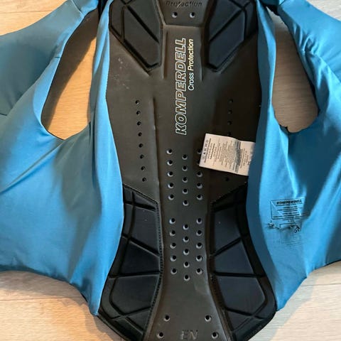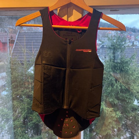 Selger denne beskyttelsesvesten, som har blitt brukt til slalåm og ridning. Som man ser på bildene har den noen flekker, men som kan prøves mer å vaskes bort før eventuell sending. Vesten passer en xs-s, og har mye beskyttelse til rygg og går helt ned til halebeinet. Pris kan diskuteres.🙌