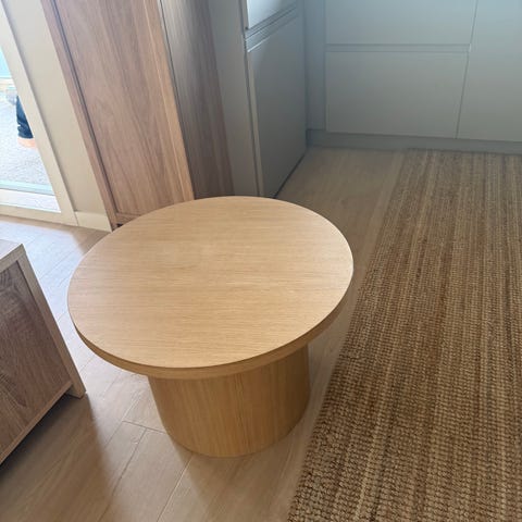 Den varme trestrukturen og den matte overflaten gir bordet et sofistikert og naturlig uttrykk, samtidig som den skulpturelle formen tilfører rommet en moderne og eksklusiv følelse.