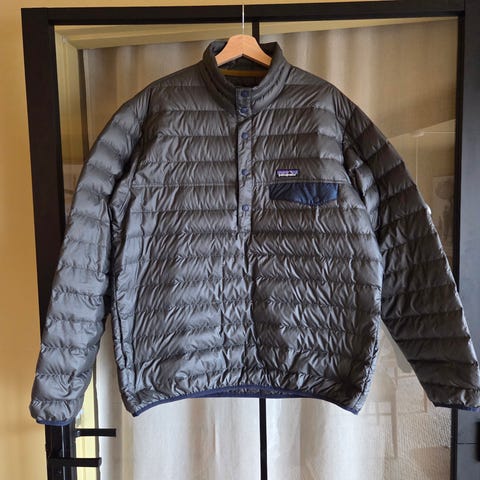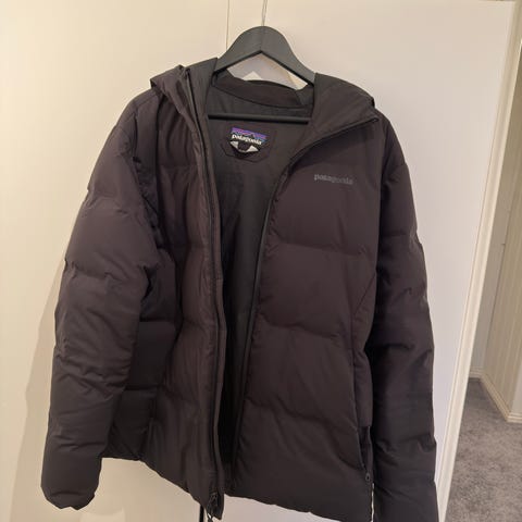 Patagonia Jackson Glacier, dunjakke for herre i størrelse L. Jakken er svart og fylt med dun for god isolasjon i kaldt vær. Den har hette og gjennomgående glidelås i front. Passer til bruk på kalde vinterdager, både til hverdags og utendørsaktiviteter.
