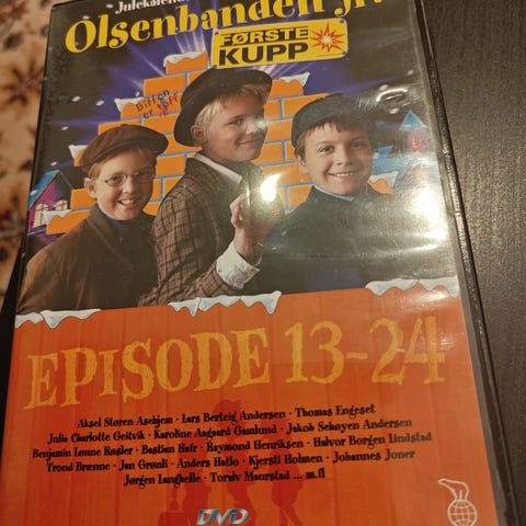 Olsenbanden jr. første kupp, julekalender med 24 episoder på 2x DVD. Ingen skader på disc eller cover.