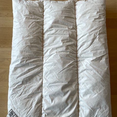 Fyll: 90 % små hvite europeiske andedun og 10 % små fjær.