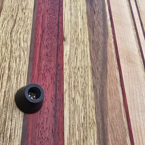 Stabilitet: Montert med solide gummiføtter og rustfrie M4-skruer. Dette sikrer at brettet står stødig og at fuktighet ikke samler seg under treverket.