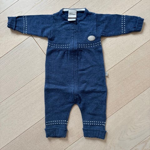 Lillelam heldress i ull i størrelse 68. Egnet som varmende heldress til baby i hverdagen eller som mellomlag.