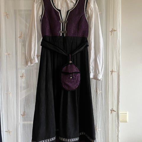 Pent brukt festdrakt selges. Dattera mi bukte den når hun var 14 år. Str på drakta er 176-16 år. Skjorte, veske og hårbøyle følger med.