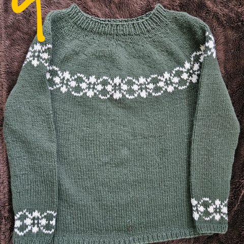 Pent og lite brukt Mariusgenser strikket i en frisk grønnfarge (Dale smartgarn).