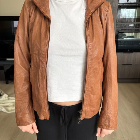 Aleksander of Norway skinnjakke for dame i størrelse S. Jakken er svart og laget i skinn, med glidelås foran. Den har flere glidelåslommer og detaljerte sømmer som gir et strukturert uttrykk. Passer som ytterjakke i overgangssesonger eller til hverdagsbruk når man ønsker en lett skinnjakke. Veldig fin både til kjole og til jeans.