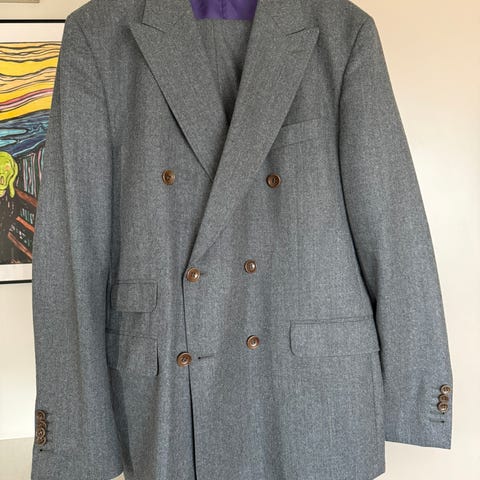 Fargen er mørk blå med diskret rutemønster som gjør den både klassisk og litt mer moderne. Passer perfekt til jobb, selskap, bryllup, konfirmasjon eller andre anledninger.