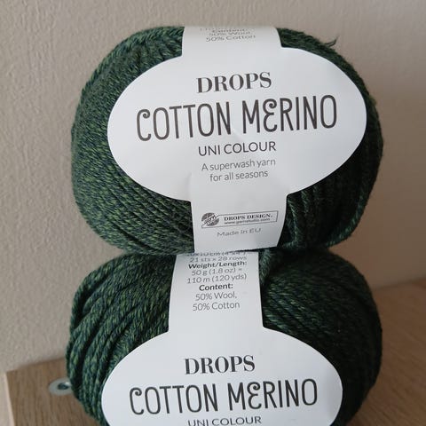 Drops Paris og Woolevo Cotton garn, begge i 100 % bomull. Garnnøstene tilhører garngruppe C og har anbefalt pinne- og heklekrokstørrelse 5 mm. Strikkefasthet er oppgitt til 17 masker på 10 cm. Hvert nøste veier 50 g og har en lengde på ca. 75 m. Garnet kommer i flere farger, blant annet lyseblå, lys rosa og mørk blå. Egnet til strikking og hekling av plagg og tilbehør der bomullsgarn ønskes.