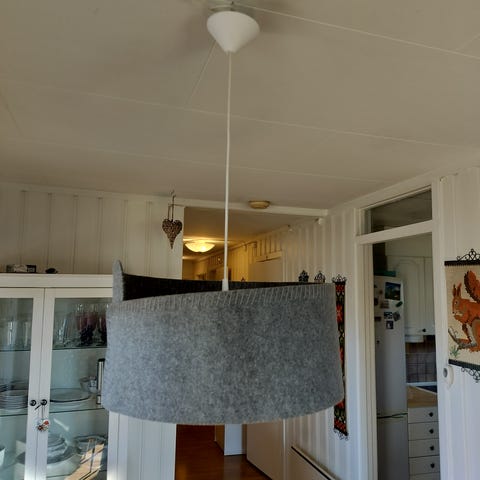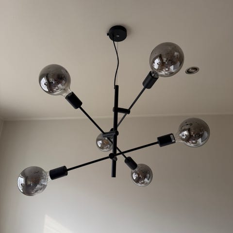 Selger en sort taklampe. Ledningen har blitt malt over (se siste bilde), men den er ellers hel og fin. Alle pærene fungerer.