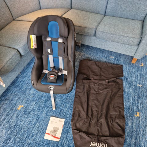 Britax Römer barnesete i størrelse 25. Barnesetet har fempunktssele med justerbare seler og polstret sete og rygg. Trekket er i 100 % polyester og kan tas av for vask etter vaskeanvisning på lappen. Farge: svart med lyse seler.