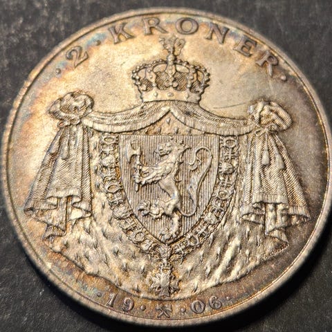 Norge 2 kroner minnemynt 1906 sølv Unionsoppløsningen 1905.