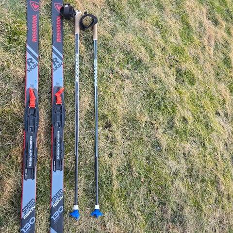 Fischer langrennsski (130 cm) med tilhørende staver (110 cm).
