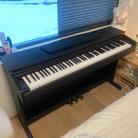 Artesia digitalpiano med 88 tangenter i svart utførelse. Instrumentet kommer med et tilpasset stativ og leveres med strømforsyning og pedalenhet. Panelet har egne knapper for ulike lyder og funksjoner, samt volumkontroll lett tilgjengelig over tangentene. Egner seg til øving hjemme, undervisning eller generell musikkbruk der man ønsker et kompakt digitalpiano med fullt klaviatur.