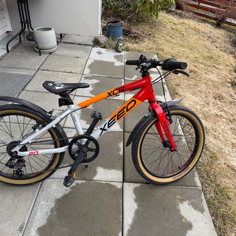 Xeed barnesykkel med 20" hjul. Sykkelen har flere gir og felgbremser foran og bak. Rammen er i burgunderfarge med lyse detaljer, og den har rette styreholker med grep som gir god kontroll for barnet. Passer til barn som er klare for å sykle på 20-tommers hjul, for eksempel til hverdagssykling, skolevei og turer på asfalt og grus.