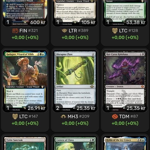 Ubrukte kort i NM-tilstand, alltid vært i kortlommer. 162 unike kort hvor 4 er foil og 1 er art card(Valley Floodcaller). Bilder vedlagt fra ManaBox-appen og pris hentet fra TCG-player.