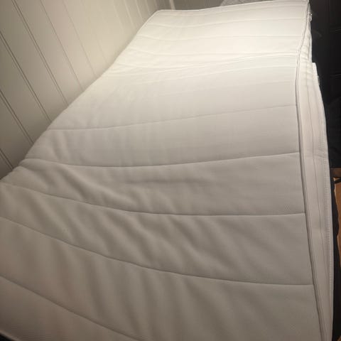 Madrassen har stått på gjesterom og har ikke blitt brukt mer enn 5-6 ganger. Stått med overmadrass (følger ikke med)