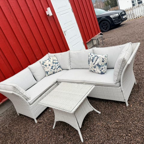 Meget pent brukt, ingen synlig slitasje. Pent brukt puter følger med. Deilig å slenge seg ned på om sommertid.