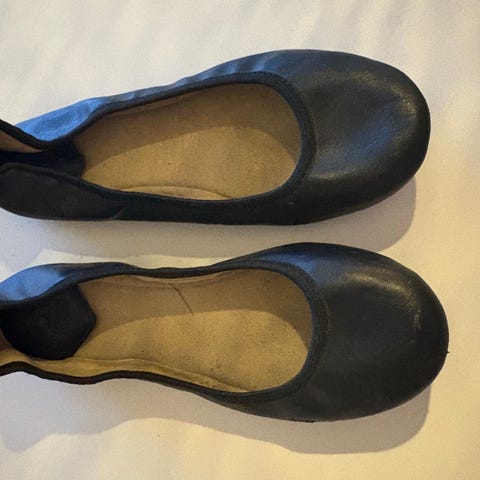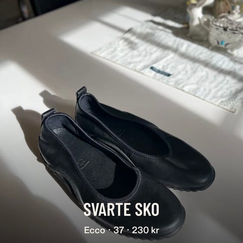 Ecco ballerinasko i størrelse 37. Skoene har enkel slip-on modell med lukket tå. Fargen fremstår som svart. Yttersålen er i gummi med Ecco-logo under. Passer til hverdagsbruk og innendørs bruk der det er behov for lette og enkle sko.
