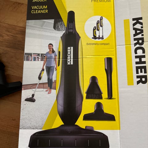 Kärcher VC4. Trådløs modell med avtakbar håndenhet og støvbeholder. Leveres med flere munnstykker for ulike rengjøringsoppgaver samt nytt filter (vist på bilde). Egnet til støvsuging av gulv og andre overflater i hjemmet.
