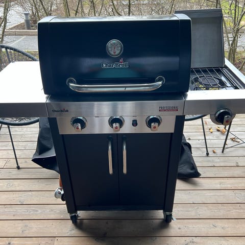 God grill med 3 brennere og sidebord med 1 brenne.