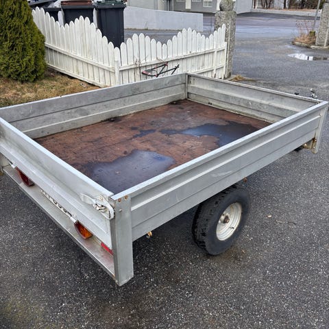 Brenderup 1150S tilhenger i galvanisert stål i grå utførelse. Tilhengeren har enkel aksel og stålsider, med bunnplate i tre. Den er utstyrt med lys bak, reflekser og standard kulekobling for personbil og Atv. Egnet for transport av hageavfall, materialer og annet gods innenfor tilhengerens vekt- og størrelsesbegrensninger.