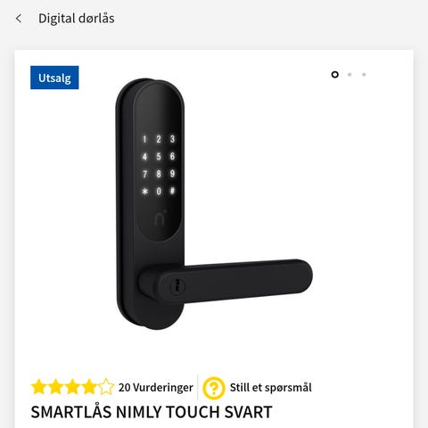 Denne låsen kan styres via Tuya sin egen app uten ekstra hub, låsen kobles til trådløst nettverk.