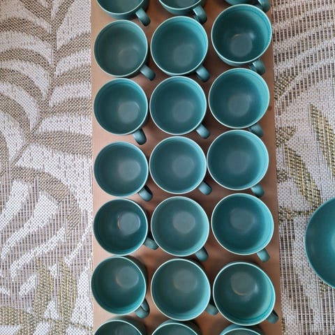Arabia Valencia - kaffekopper med skål blå-hvite