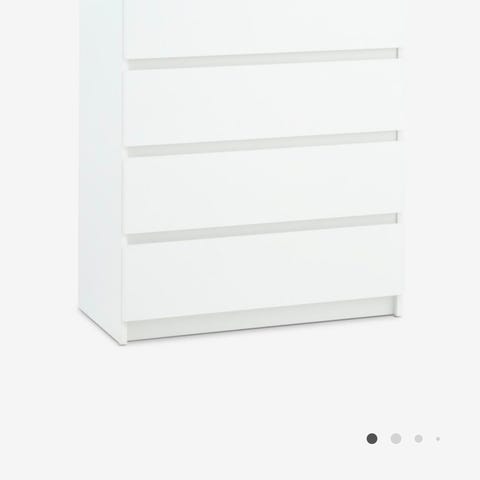 Kommoden er pent brukt og fremstår i god stand. Skuffene glir fint, og den er ferdig montert – så her slipper du den omfattende skrujobben!