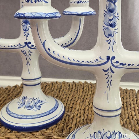 Lysestake, porselen hvit og blå