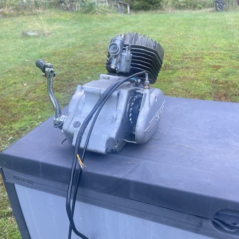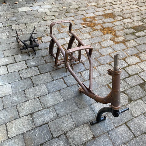 Rustet ramme, men papirer iorden selges 2000 kr. Framskjerm, sidedeksel, luftfilter, lykter selges, gi bud. Kjøper betaler frakt.