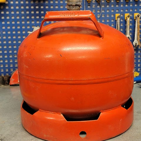 Grouw ugress-/gassbrenner på tralle med to hjul, gasslange og regulator. Brenneren kobles til gassflaske via medfølgende slange og regulator. Brukt til ugressbrenning. Selges fordi den ikke lenger benyttes.