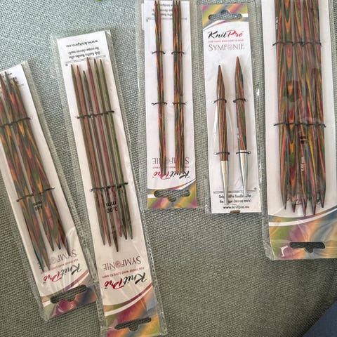 Selger 6 sett med Knit Pro strømpepinner.