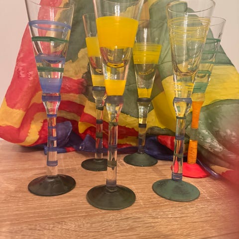 ANNE NILSSON håndmalte glass "clown" snapsglass 2 stk. selges kr 200 kr pluss frakt.