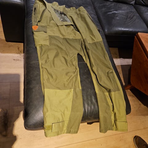 «Kit» til speider ca 14 år, bestående av jakke og bukse i grønn farge. Buksen har forsterkede felt over knærne i mørkere stoff. Passer til friluftsliv og turbruk.