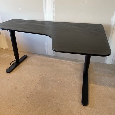 Det brukte elektriske understellet fra Linak fungerer som det skal og er godkjent av oss til videre bruk. Den svarte platen til svart understell gir et moderne preg til ethvert rom.