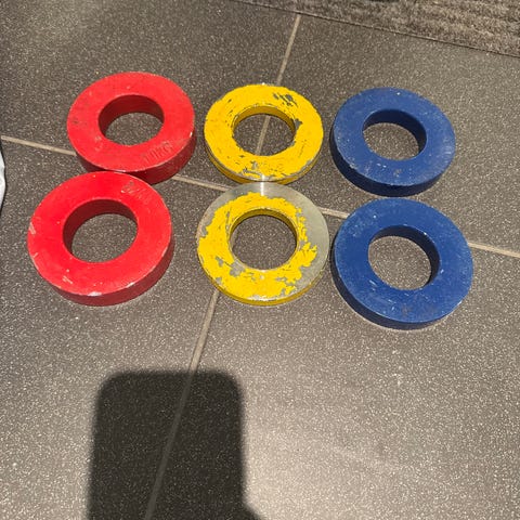 Selger to par vektskiver på 0.25 kg og 0.5 kg samlet. Må hentes.