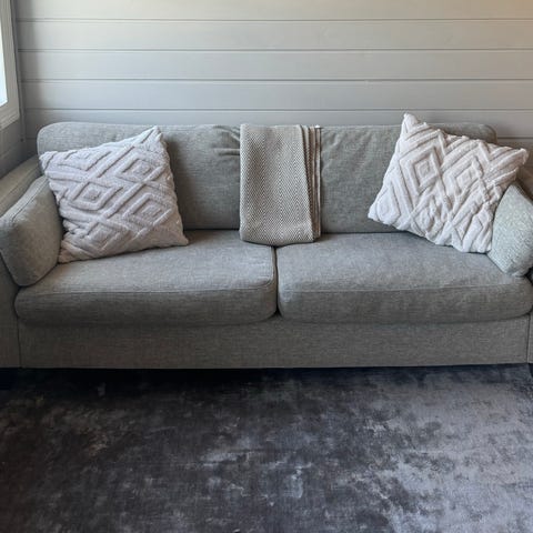 Selger en 3-seter sofa fra Bohus, i en greige farge som enkelt passer inn i enhver stue. Sofaen er mye brukt, men i god stand.