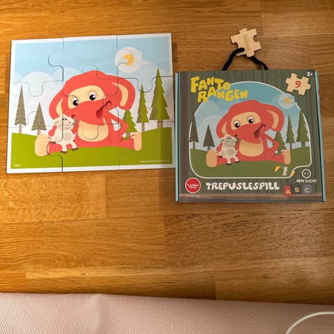 Fantorangen trepuslespill med 9 store brikker. Motiv av Fantorangen-figuren fra NRK Super. Puslespillet er laget i tre og er egnet for barn fra 2 år og oppover. Brikkene er store og enkle å håndtere for små hender, og leveres i eske for oppbevaring.