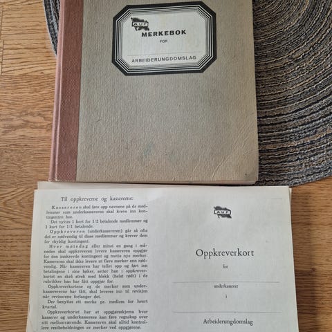 Tøymerker som aldri har vært brukt. Trondheims merket er signert av Hjallis(200 kr)