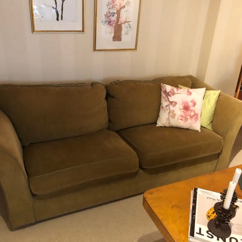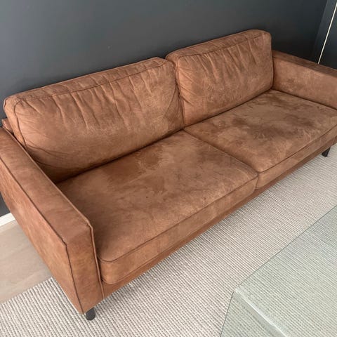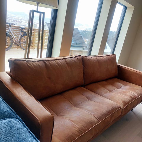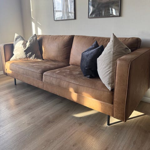 Sofa fra Skeidar, farge Colorado Cognac. Sorte bein.