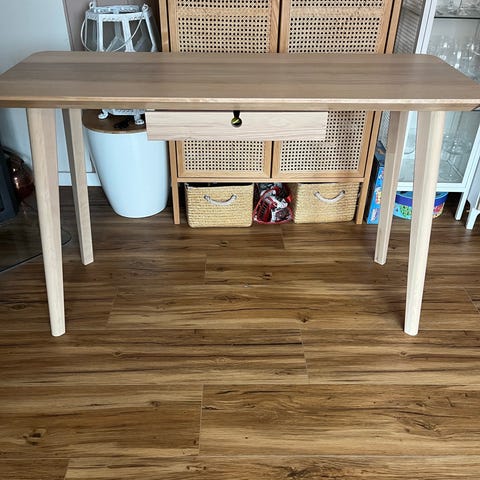 Skrivebord selges, pent brukt, litt misfarget i skuffen.