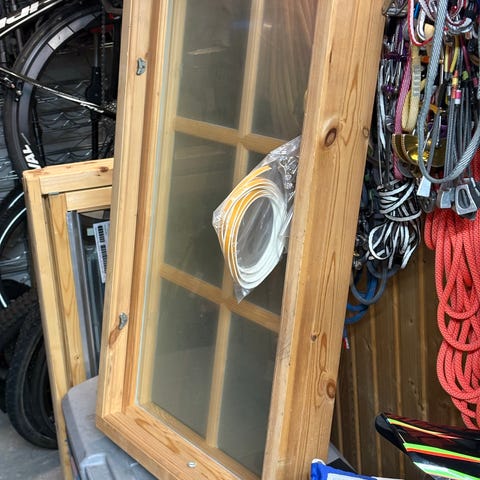 NorDan trelags vindu med frostet glass og utvendig topphensel, alu innfesting. Utvendig karmmål 1088 x 688 mm. Vinduet har hvit farge (NCS S0502Y). Egner seg som liggende vindu, for eksempel til kjeller, bod eller andre rom der det er behov for et mindre vindu. Har stått lagret innendørs. Ny pris var over 3500 for en stund tilbake.