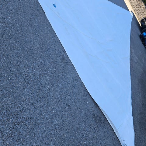 Vi reduserer seilgarderoben ombord på LUPI, vår Hallberg Rassy 43, og selger dette kevlar storseilet i EPEX (?) duk med ensidig taffeta. Det har vært et veldig solid storseil og vært overhalt hvert år av Elvstrøm. Nettopp overhalt før det ble lagt vekk som "back-up" seil.