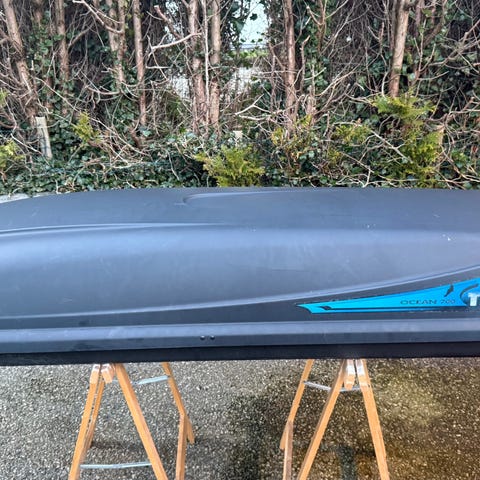 Skiboksen er lagret i garasje, har noen merker men ingen skader som er av betydning.