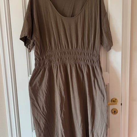 Lang lett sommerkjole i lin fra Kay/Day (Kappahl). Knyting i livet og over brystet gjør den lett å justere, den er også stor i størrelsen.