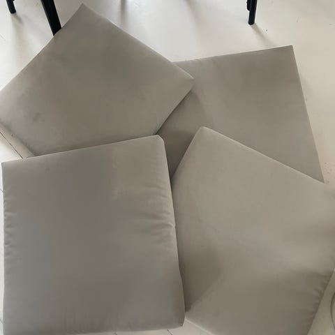 Pent brukte puter. 2 lengder 65x134 1 hjørnepute. 70x70x140. 1 pute 70x70 til puff. Puter til rygg samt løse puter til pynt