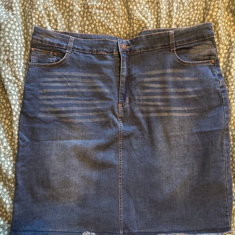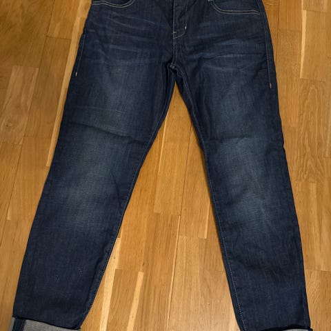 Fin dongeribukse med knapper selges da jeg ikke bruker den. Mørkeblå med litt vask, egnet til å rulle opp beina på.