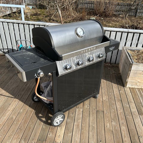 Selger gassgrill Austin and Barbeque kjøpt i 2024. Den er brukt kun 2–3 ganger med å bruke langpanne, og har stått på terrasse under trekk siden.