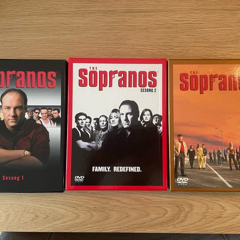 The Sopranos serie sesong 1 og 2 på dvd. Sesong 1 er spilt av 1 gang og Sesong 2 er forsatt ikke plasten