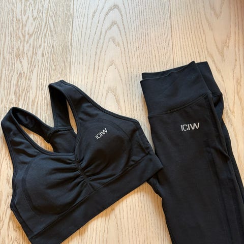 Sort sports-BH fra ICANIWILL i størrelse M, med middels støtte og mulighet for å ta ut innleggene. Kun vært prøvd på. Nypris 499,-